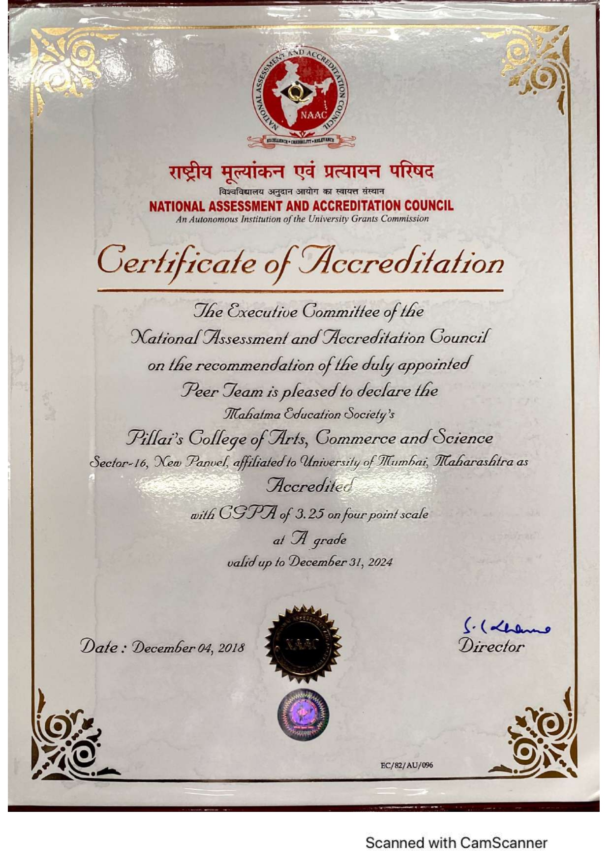Certificate of Accreditation (view .pdf)