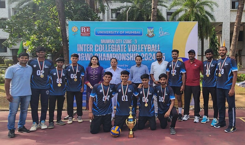 Mumbai University Champion Volleyball (Men): PCACS Men Volleyball team retained the title and Gold medal at Mumbai University Mumbai City zone Inter Collegiate Volleyball Men championship held at Pillai college of Engineering, New Panvel, on 9th and 10th October 2024. Six players from PCACS selected to represent Mumbai University in All India West Zone University championship at Samabaji Nagar (MH).