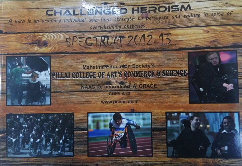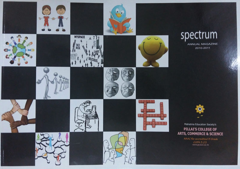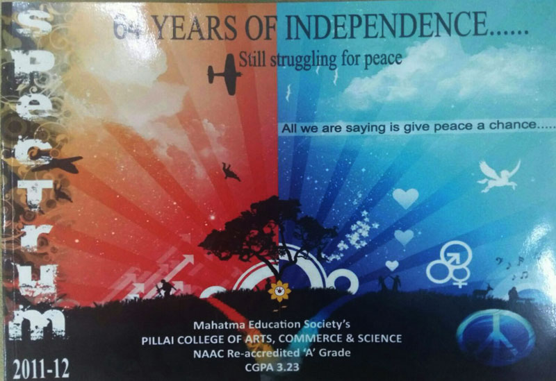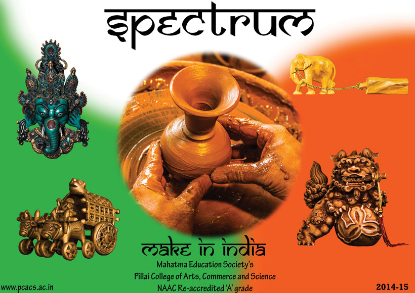 Spectrum, our annual college magazine, aims to inform, inspire, entertain and create awareness on a number of current social issues to a diverse readership. Spectrum 2014-15 is dedicated to the ‘Make in India’ campaign. Social themes of our earlier editions include: Caring for the Elderly, Caring for Animals, Female Foeticide, AIDS, Science and Superstition, Teen Stress, Peace and the like.